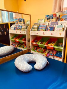Il nostro asilo nido promuove l’interesse per la lettura fin dai primi anni di vita, grazie a una collaborazione con la Biblioteca civica di Vedano al Lambro. Attraverso questo progetto, i bambini hanno l’opportunità di avvicinarsi ai libri in modo ludico e coinvolgente, partecipando a incontri periodici che prevedono letture animate, narrazioni e attività creative legate alle storie raccontate. L’obiettivo è stimolare la fantasia, la curiosità e il linguaggio, creando un primo legame positivo con il mondo della lettura.