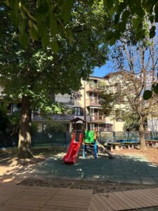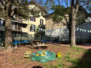 L’ambiente esterno è una risorsa fondamentale per lo sviluppo sensoriale, espressivo e relazionale dei bambini. Il giardino del nido, ricco di stimoli naturali, offre ai piccoli uno spazio dove esplorare, meravigliarsi e crescere insieme. Attraverso esperienze dirette con la natura, i bambini sviluppano nuovi linguaggi sensoriali e una maggiore consapevolezza dell’ambiente che li circonda. Questo approccio ecologico sostiene la crescita fisica e la resistenza alle condizioni climatiche, stimola l’esplorazione libera e creativa, favorisce la scoperta delle stagioni e dei cambiamenti della natura, e promuove un primo senso di responsabilità e cura verso l’ambiente.