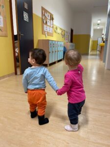 Il nostro modello di ambientamento si ispira all’approccio svedese, adattandolo ai principi di attaccamento e affettività tipici della nostra cultura. Prevede una presenza attiva e continuativa del genitore durante i primi tre giorni di inserimento dove l’adulto accompagna il bambino partecipando a tutte le attività quotidiane. Dal quarto giorno, in accordo con la famiglia, inizia il distacco progressivo, che può essere di mezza giornata o giornata intera.