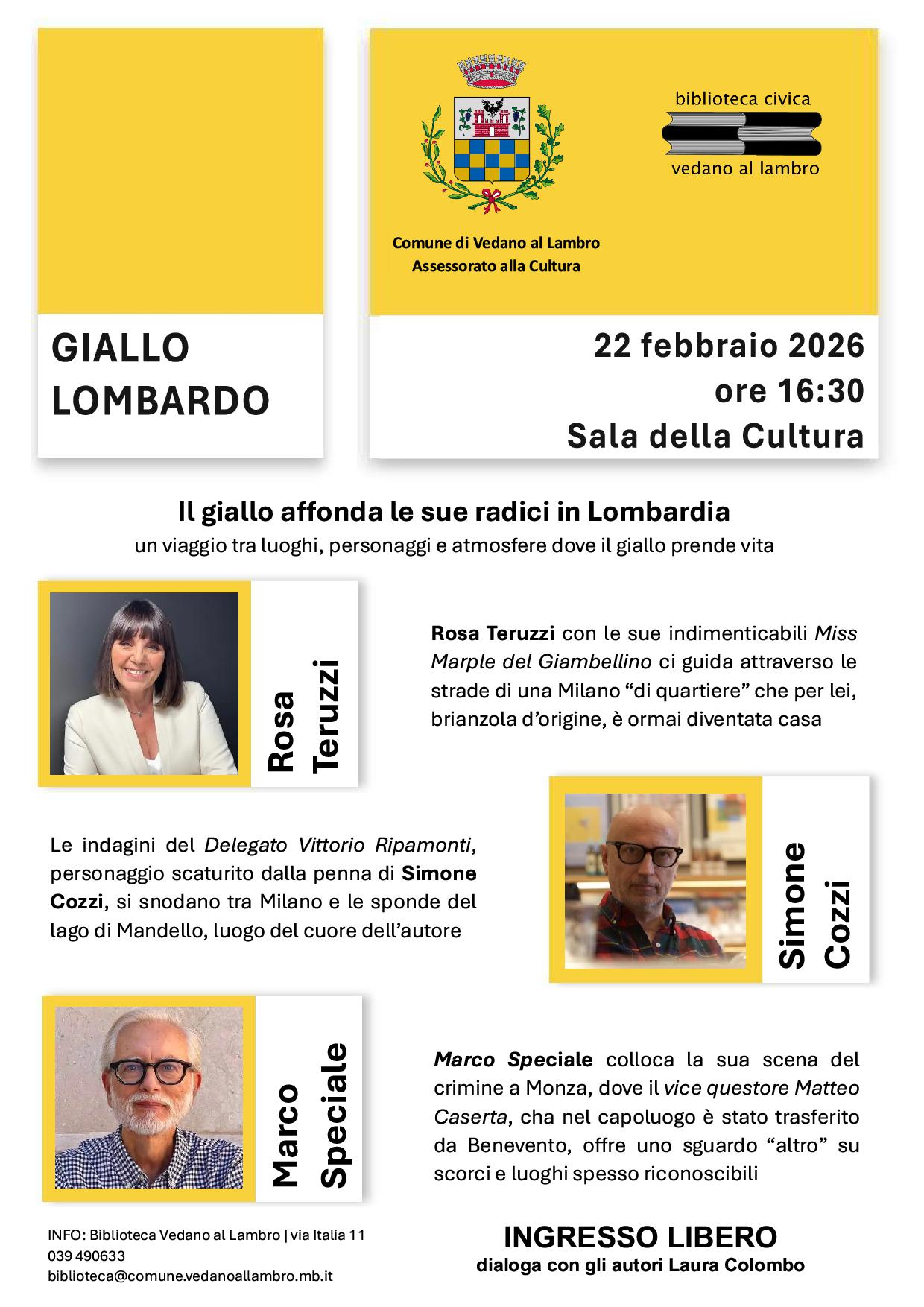 Un'occasione imperdibile di conoscere vicende legate al territorio per tutti gli amanti del romanzo giallo (e sappiamo che a Vedano al Lambro non sono pochi!).