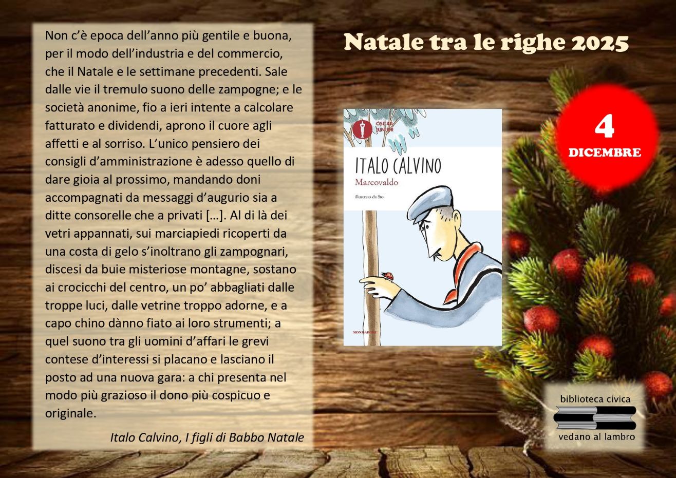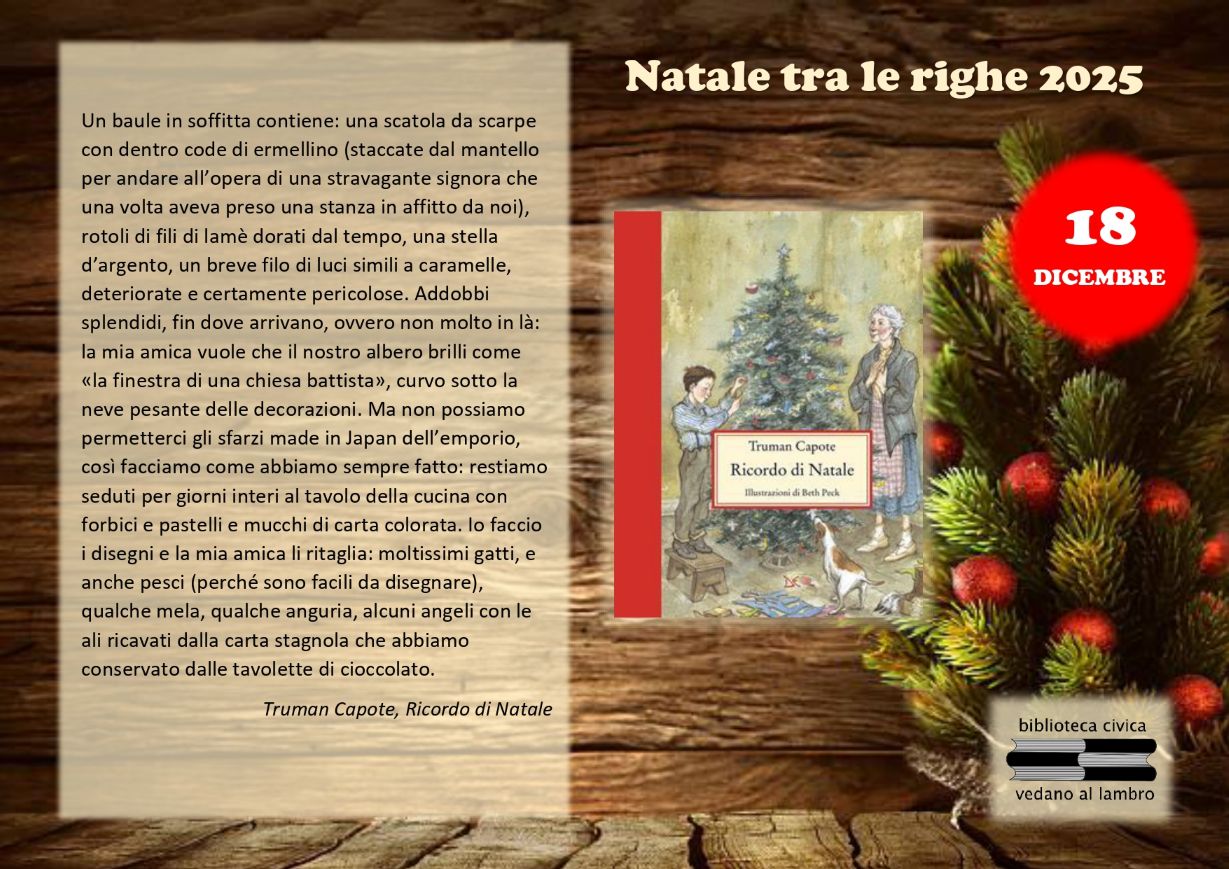 Fino al 24 dicembre una citazione "natalizia" al giorno, tratta da libri diversi: le trovate di seguito e nella galleria di immagini. Tutte le nostre proposte sono presenti nel catalogo di BrianzaBiblioteche.